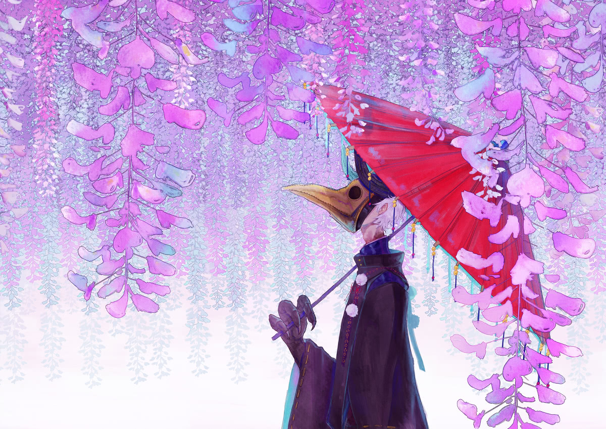 插画 唯美 清新 治愈 紫藤萝 背景 古风 二次元 动漫 女生 高清壁纸