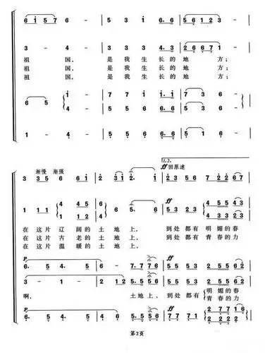 我的祖国简谱我的祖国合唱总谱简谱