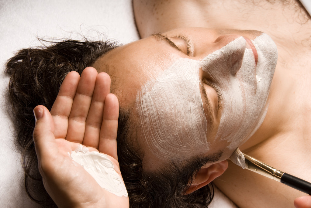 护肤男士洁面面膜男性护理.男士在美容院进行面部护肤治疗.照片