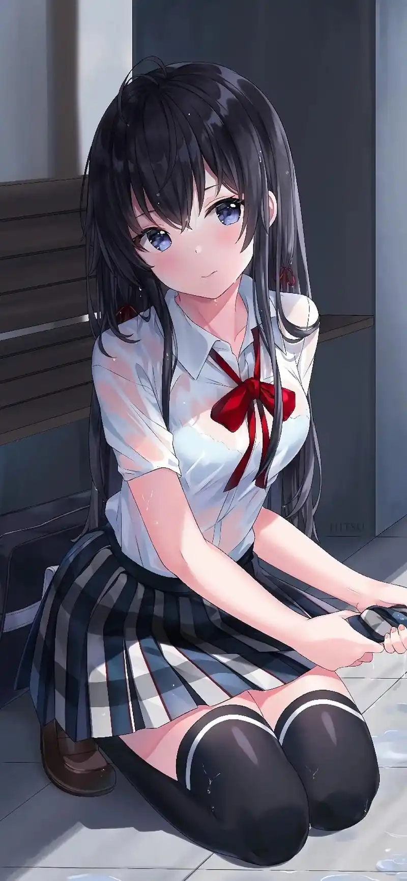 绑头发个性女孩嘴唇咬着皮筋美女4k动漫壁纸竖屏