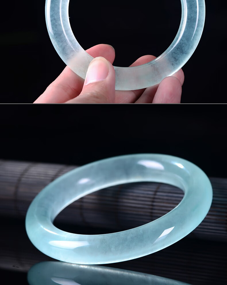 自然工艺精工制作石英岩玉手镯浅冰色玉手镯