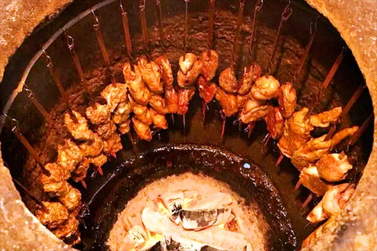 吃过电烤,碳烤,第一次见到这种瓦缸烧烤97一个炭火烧的大瓦罐子肉串