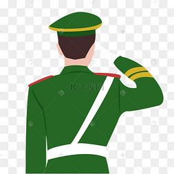 手绘插画士兵军人敬礼上半身背影党政免抠元素素材