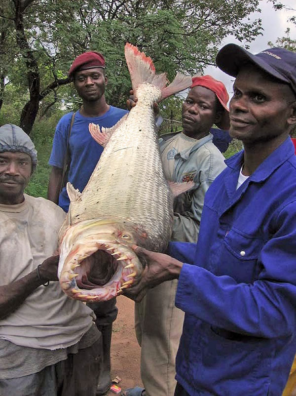 p>黄金猛鱼(学名: i>hydrocynus vittatus /i>):体长133厘米,体重50