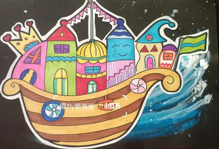 今天画艘船吧#创意美术儿童画 #创意美术 #绘画日常 #船 #绘画
