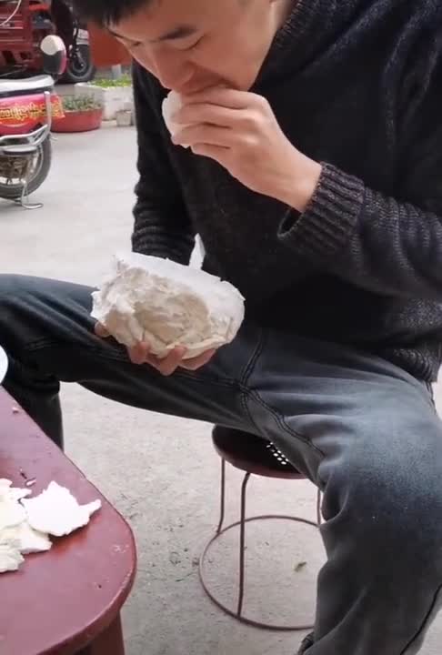 一个馒头两只手拿着都显大,看完小哥的吃相,我突然感觉撑得慌
