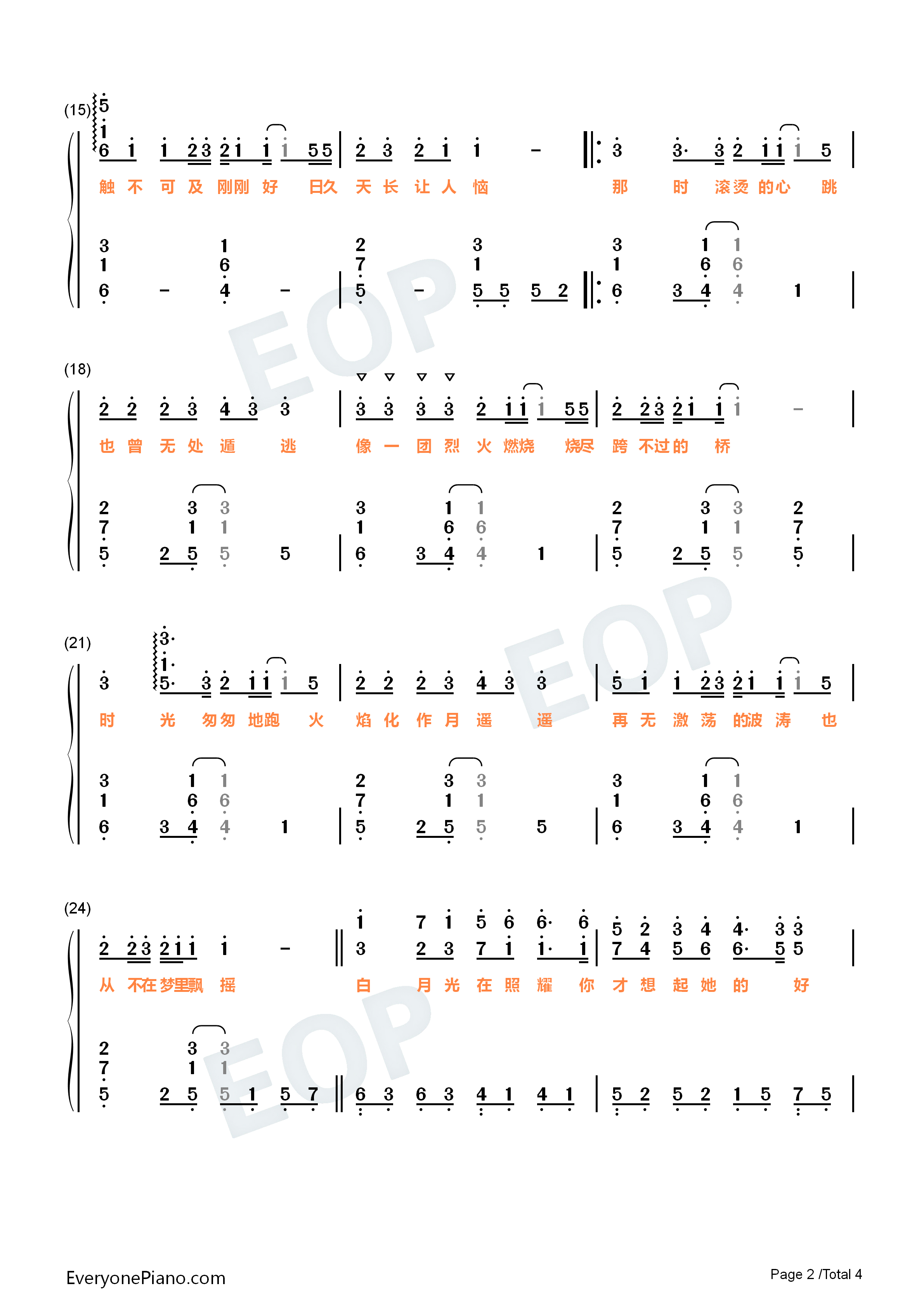 白月光与朱砂痣-好听版双手简谱预览2