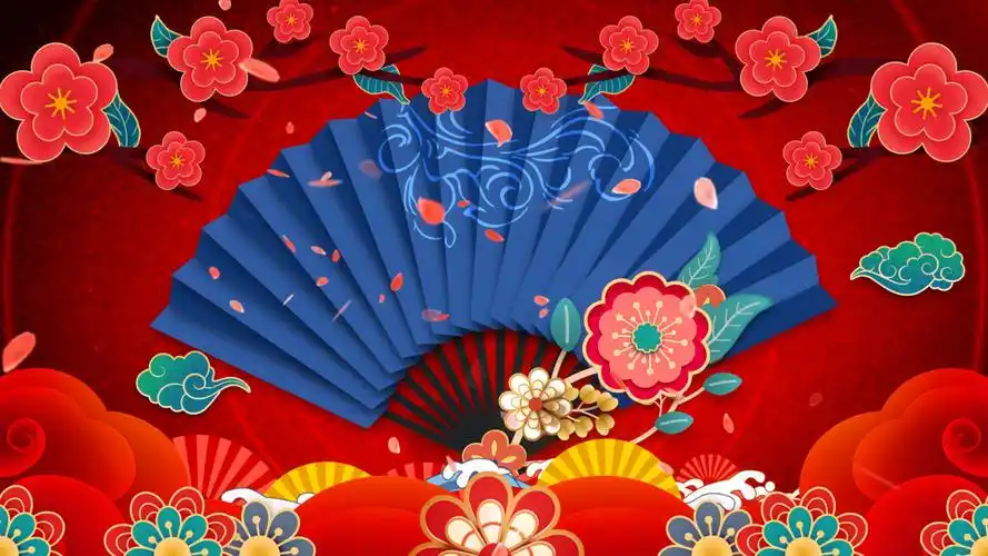 4k喜庆中国风扇子舞小品相声戏曲舞台背景高清led大屏幕舞台相声房间