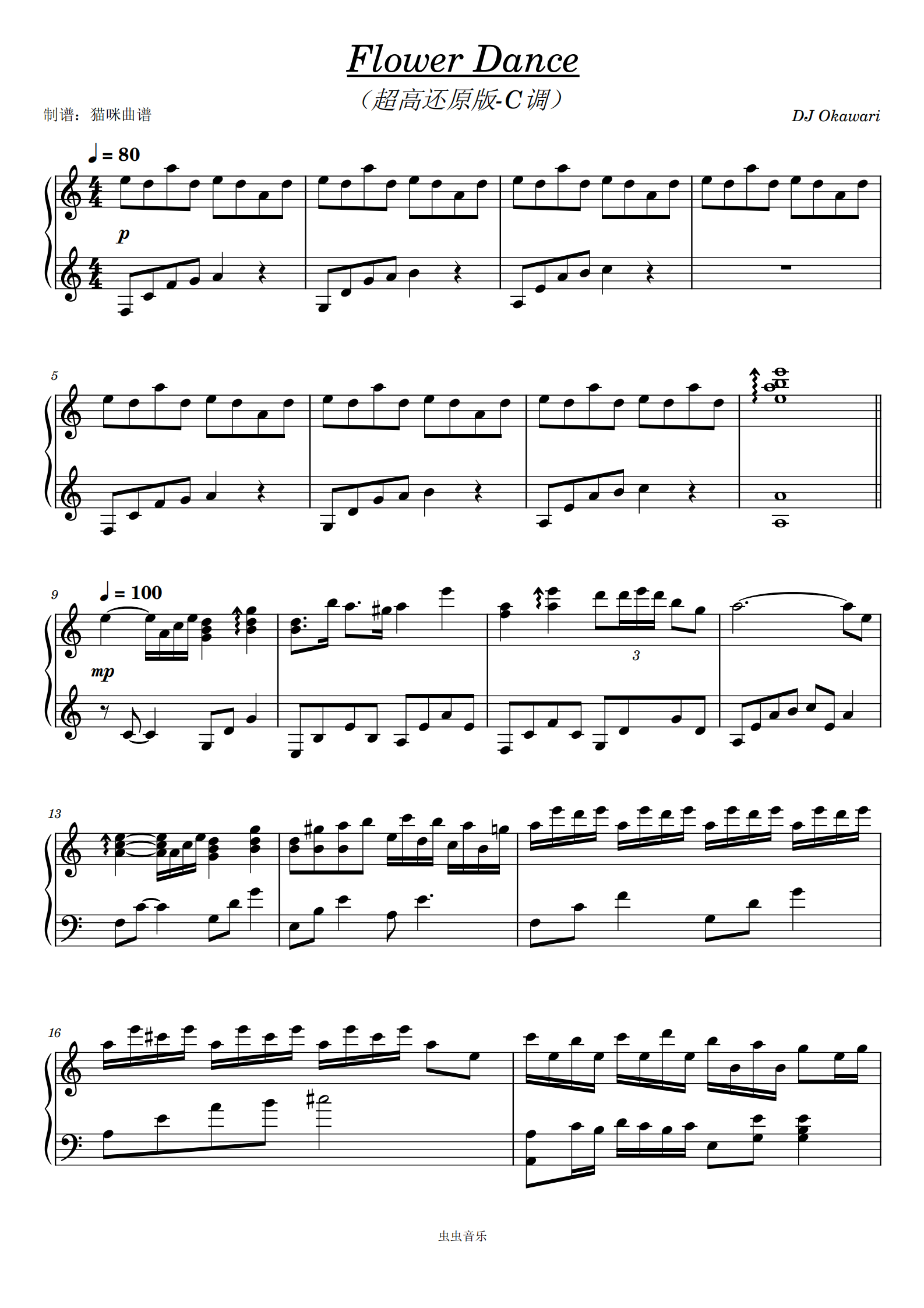 《flower dance》-花之舞(超高还原版-c调)钢琴谱-虫虫钢琴