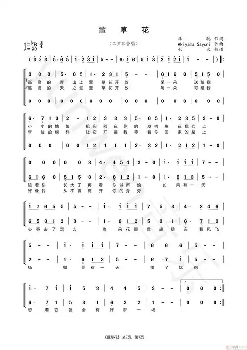萱草花(完整歌词二声部更新完)简谱-演唱-韵文音乐制作曲谱-歌谱网