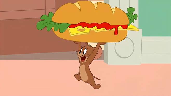 猫和老鼠:杰瑞偷走汉堡,准备大吃一顿,没想到汤姆发现