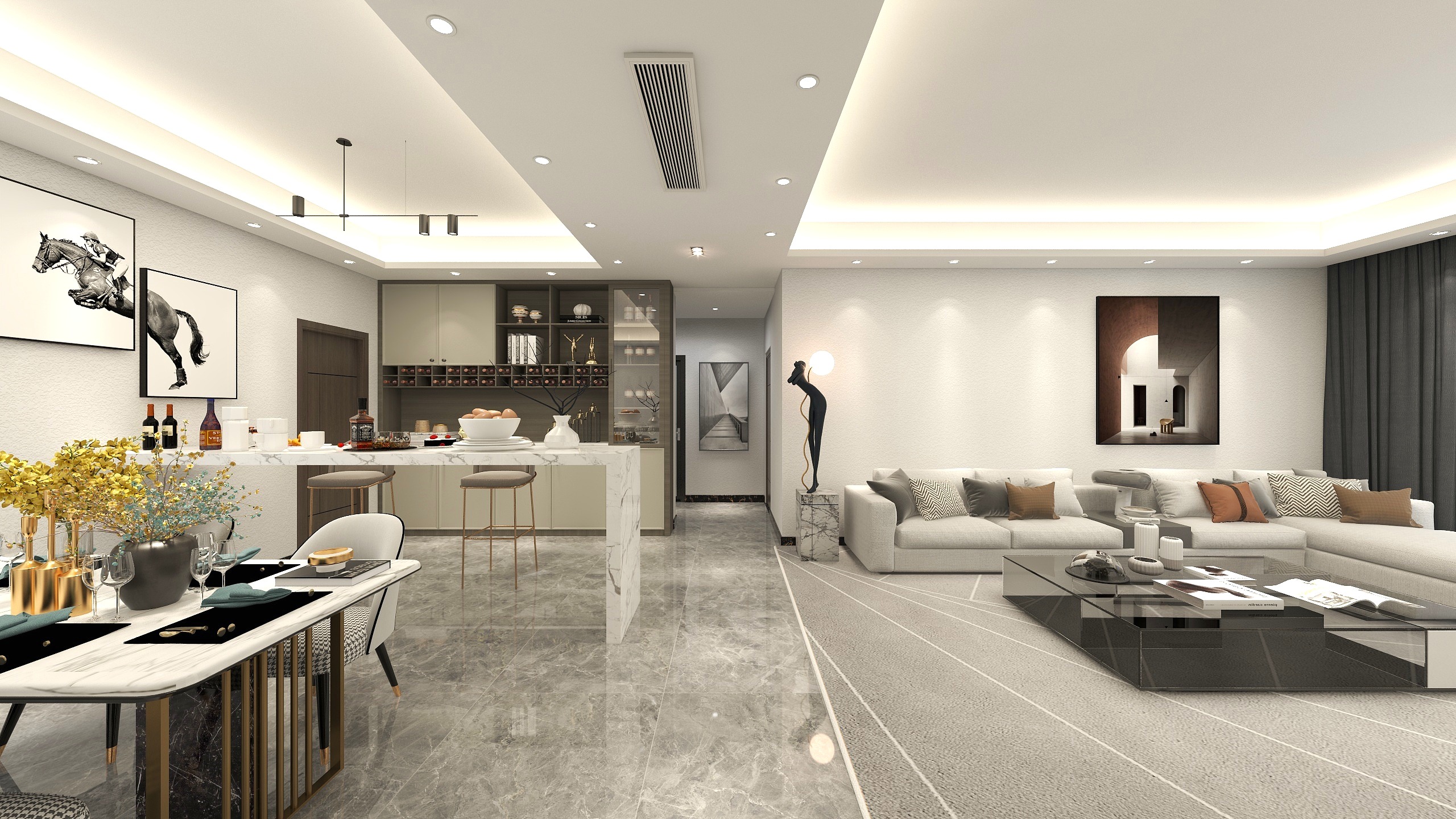 静安区大宁金茂府158平现代风格大平层客厅装修效果图