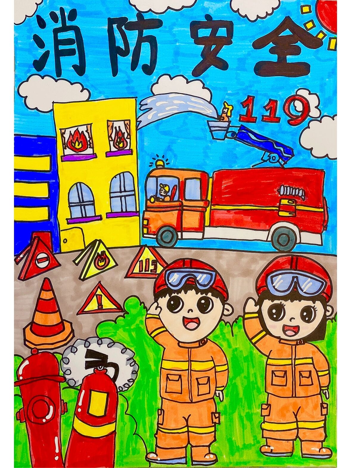 小学幼儿园消防绘画.《消防03安全,人人有责》|||#致敬消 - 抖音