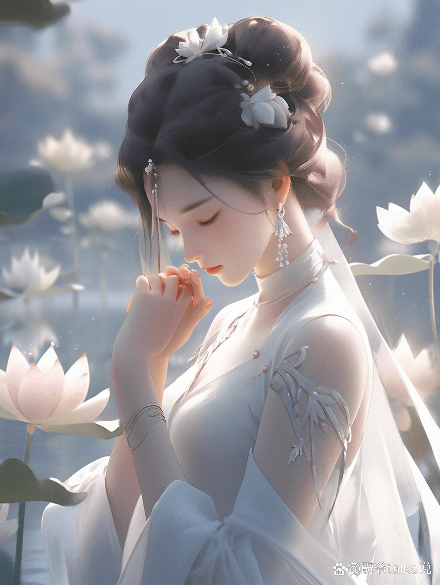 淡雅荷花|高清壁纸|古风美女 粉艳荷花不胜娇, 清波荡漾小船摇.