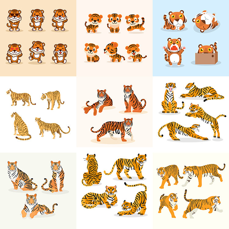 卡通老虎 多款可爱呆萌凶猛动物形象 ai格式矢量设计素材