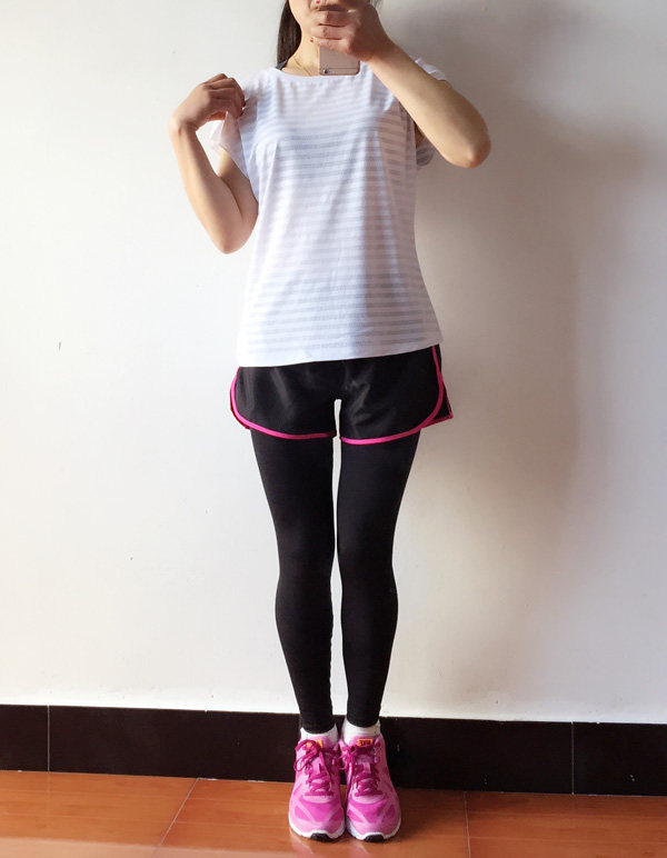 短裤配运动紧身裤