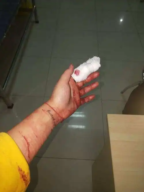 手腕被酒瓶割伤