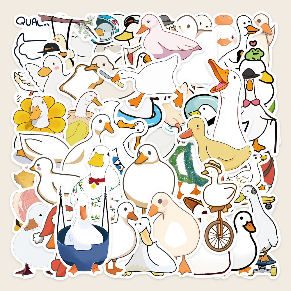 50张可爱卡通简笔画鸭子贴纸笔记本电脑行李箱手机壳装饰diy贴画