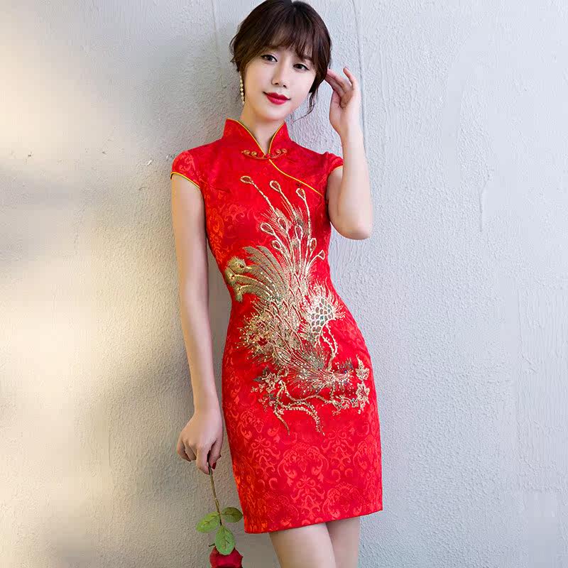 共37 件凤凰短旗袍新娘结婚红色旗袍敬酒旗袍相关商品