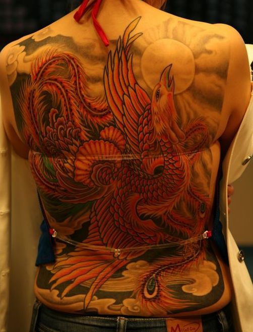 满背凤凰纹身图片背部新传统纹身图案