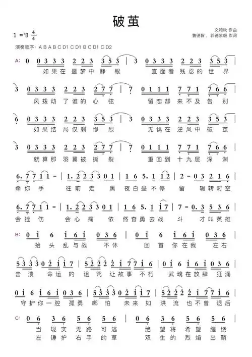 《破茧》 | 简谱