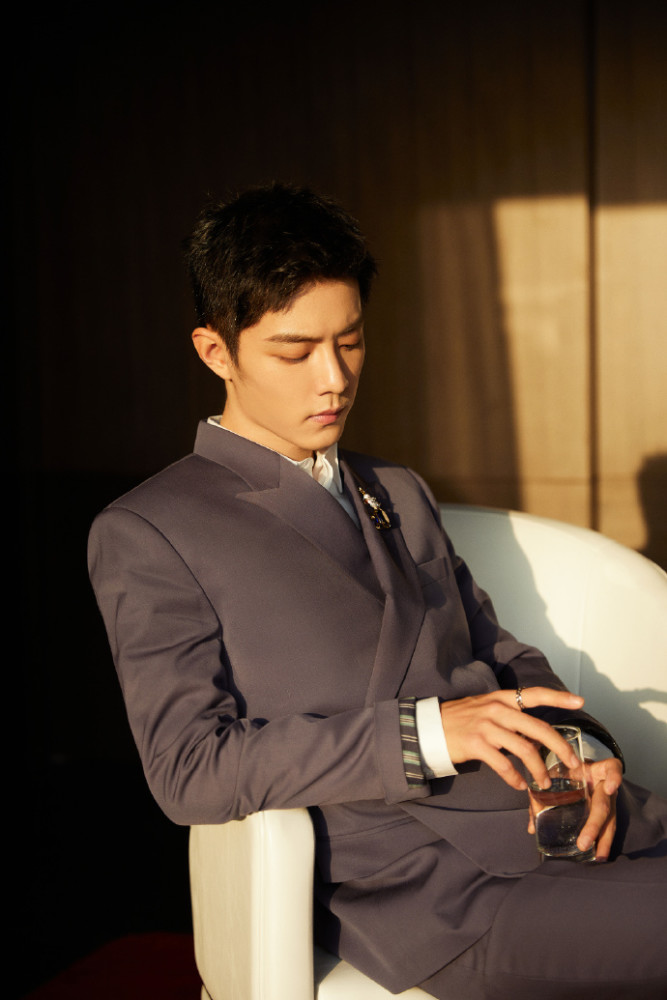 分享一组肖战的库存照短发西装造型清爽帅气侧颜高级感满满