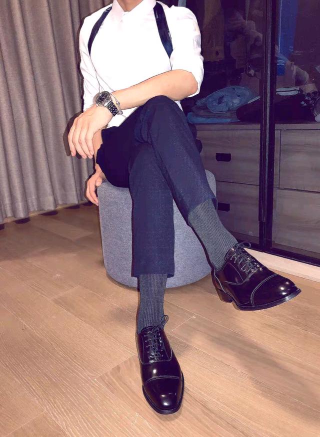 白衬衫正装帅哥,黑皮鞋搭黑袜,魅力帅