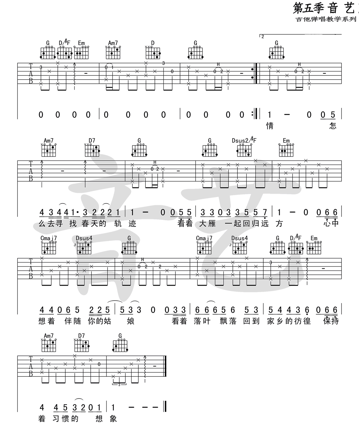 春夏秋冬的你吉他谱王宇良g调原版编配音艺乐器吉他谱