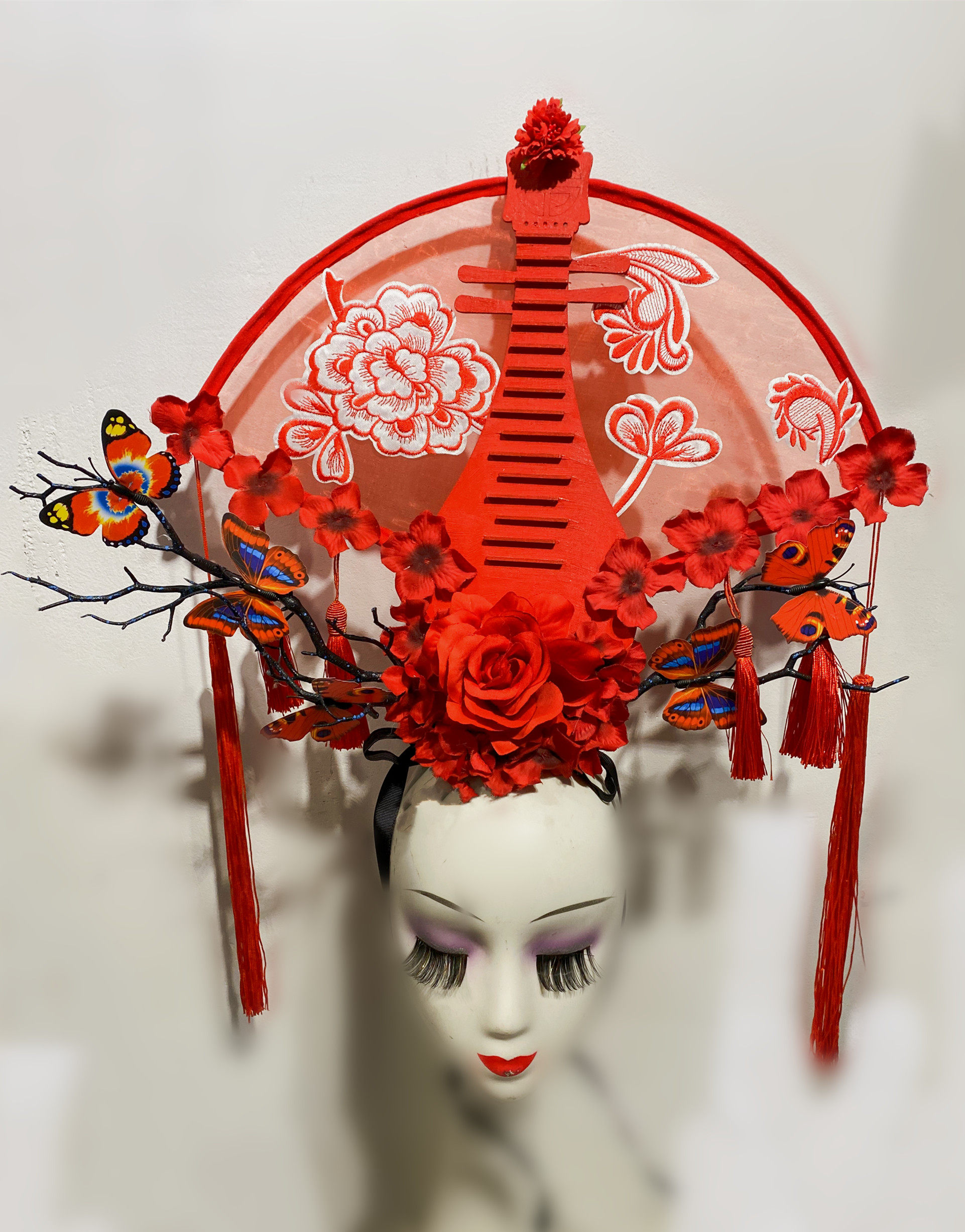 中国青花瓷系列头饰走秀模特比赛夸张彩妆造型头饰