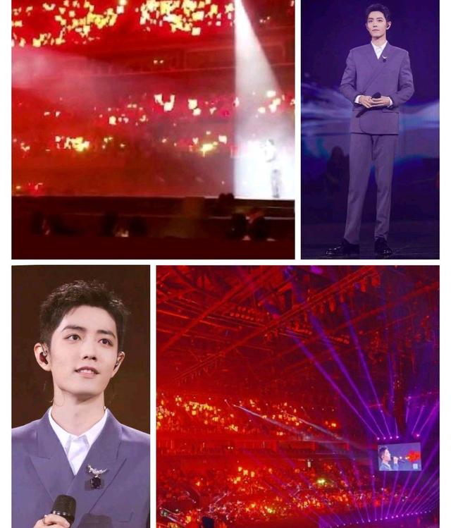 出现的瞬间灯牌亮起粉丝汇聚出的红海让肖战在舞台上哽咽