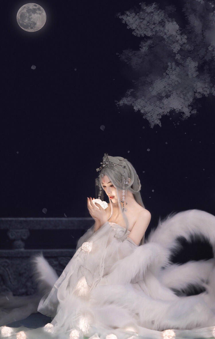 九尾狐妖古风女白色