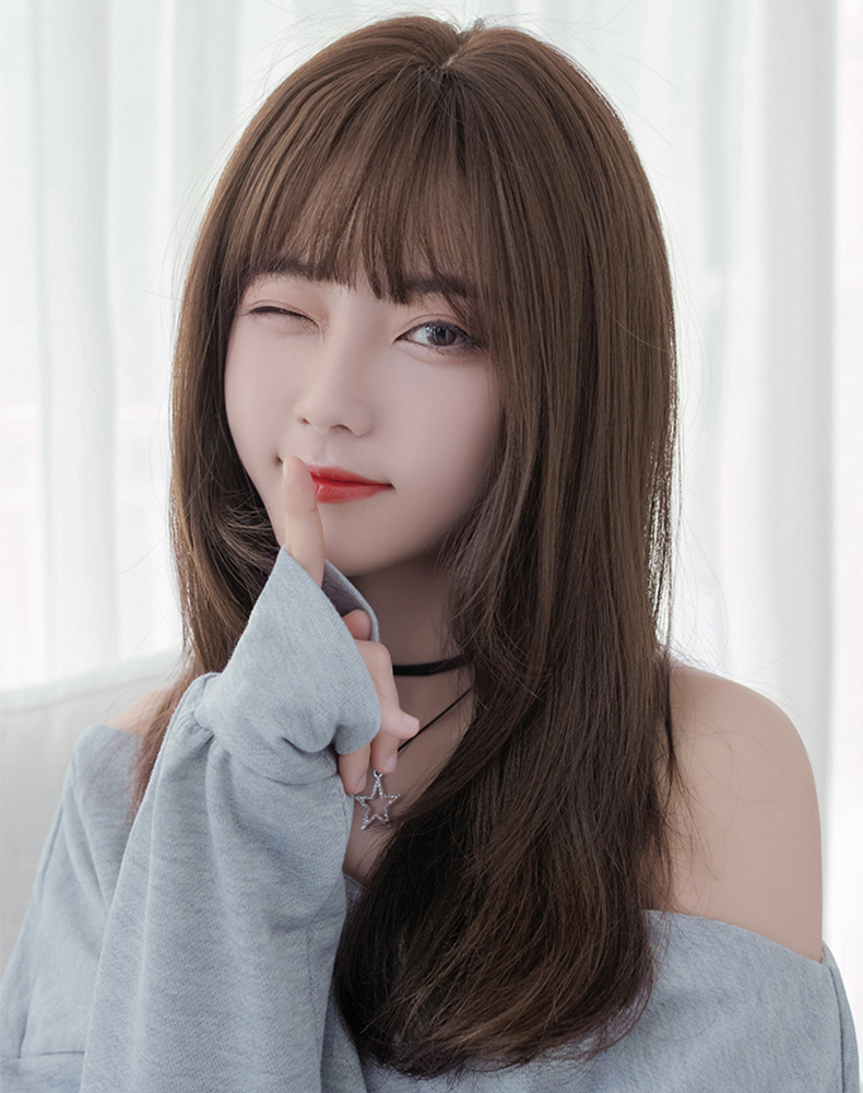 假发女黑长直发齐刘海自然空气刘海中长发cos网红气质修脸全头套