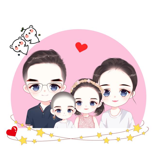你发图我来画|卡通全家福|一家四口头像