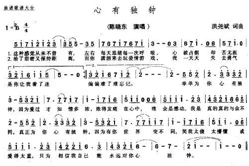 心有独钟_简谱_歌谱_曲谱_吉他谱_五线谱