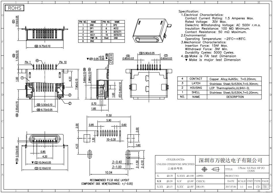 type-c6p母座_usb母座接口_深圳usb连接器_东莞亚豪电子有限公司