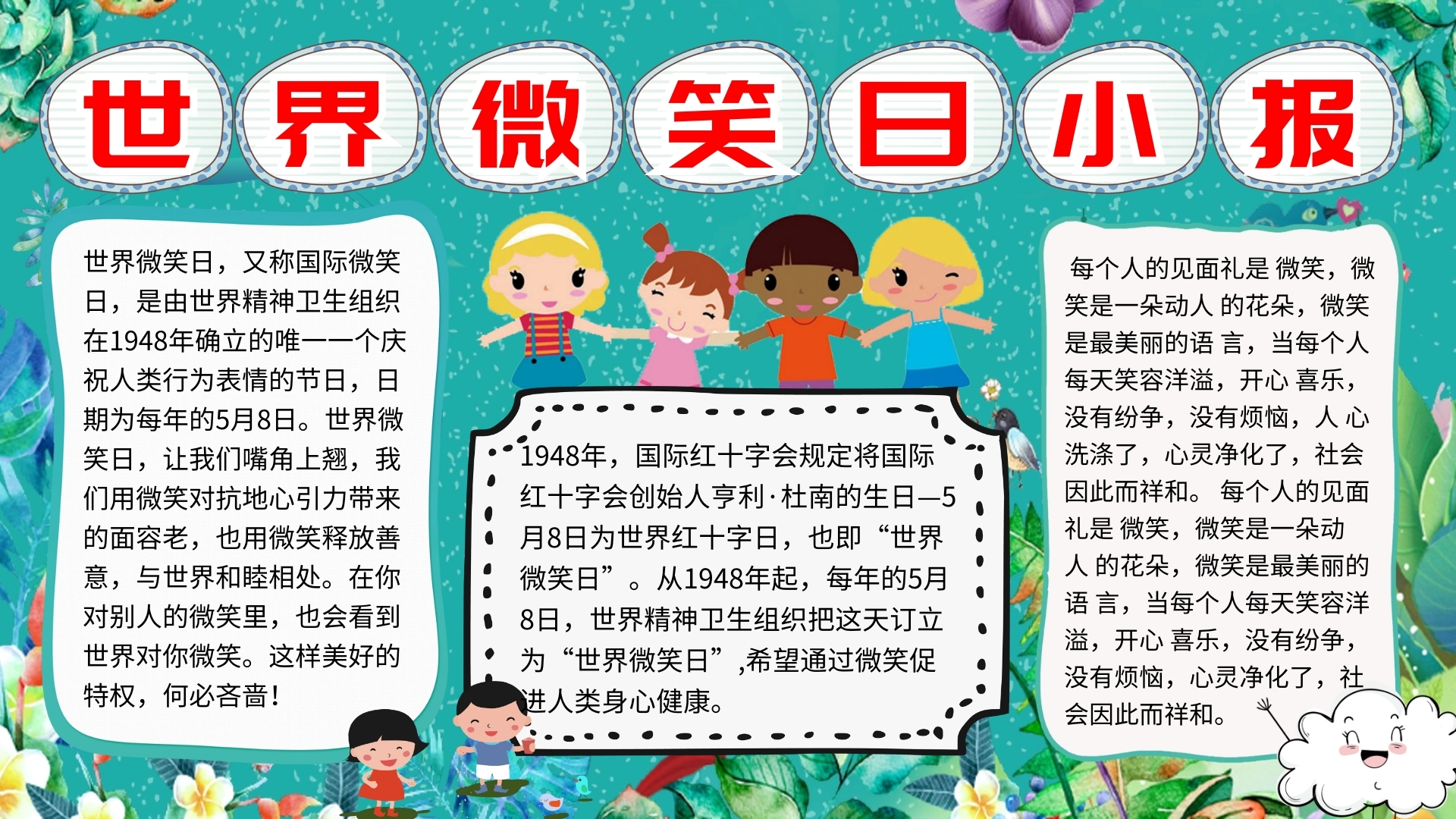 世界微笑日手抄报清新插画风世界微笑日介绍小报_第1页