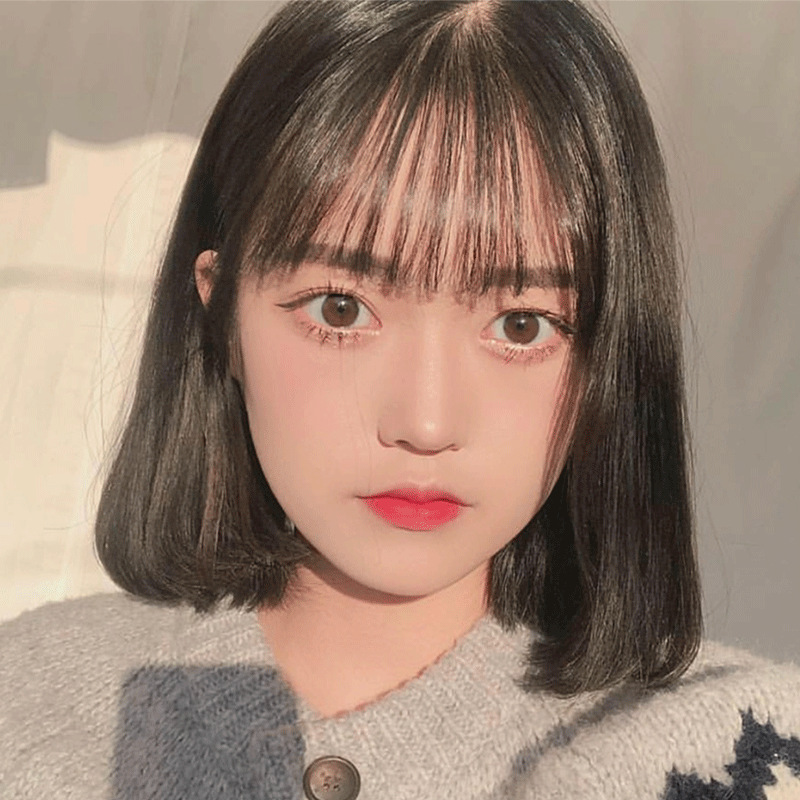圆脸 甜美可爱_假发女短发圆脸bobo头蓬松修脸空气齐刘海波波学生短