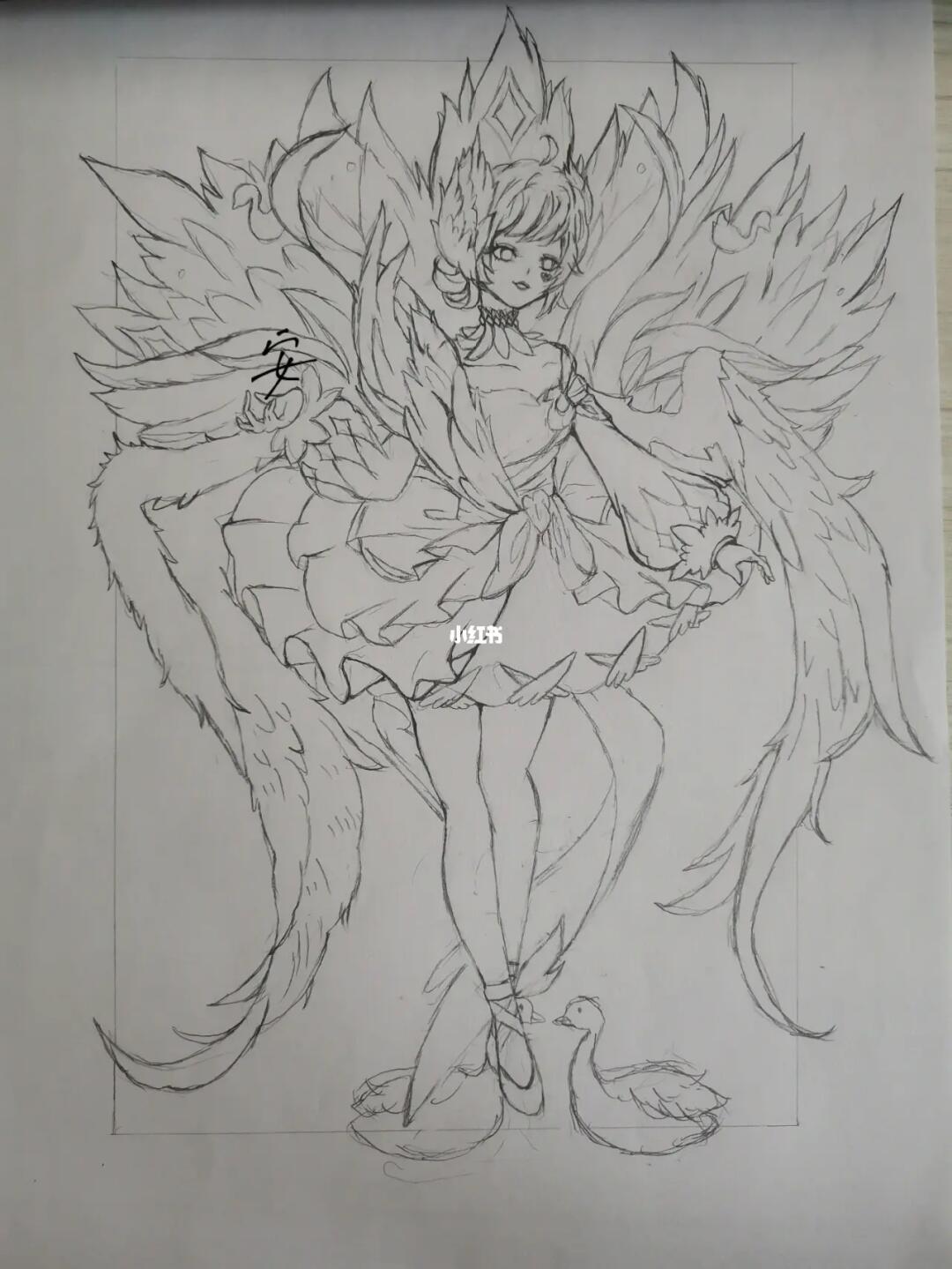 手绘王者荣耀小乔天鹅之梦61白天鹅附步骤图
