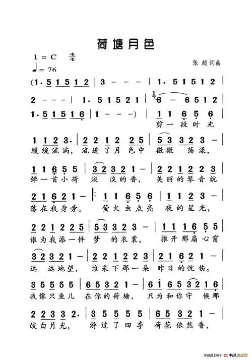 荷塘月色简谱-凤凰传奇-月下荷香鱼儿游,醉倒了1