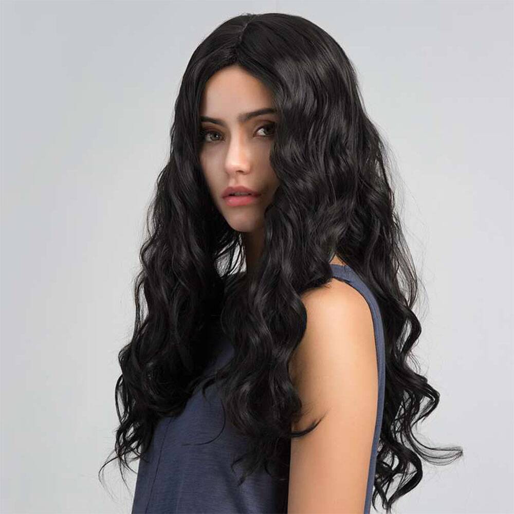 假发欧美长卷发染色自然黑色水波纹大卷中分卷发假发批发跨境