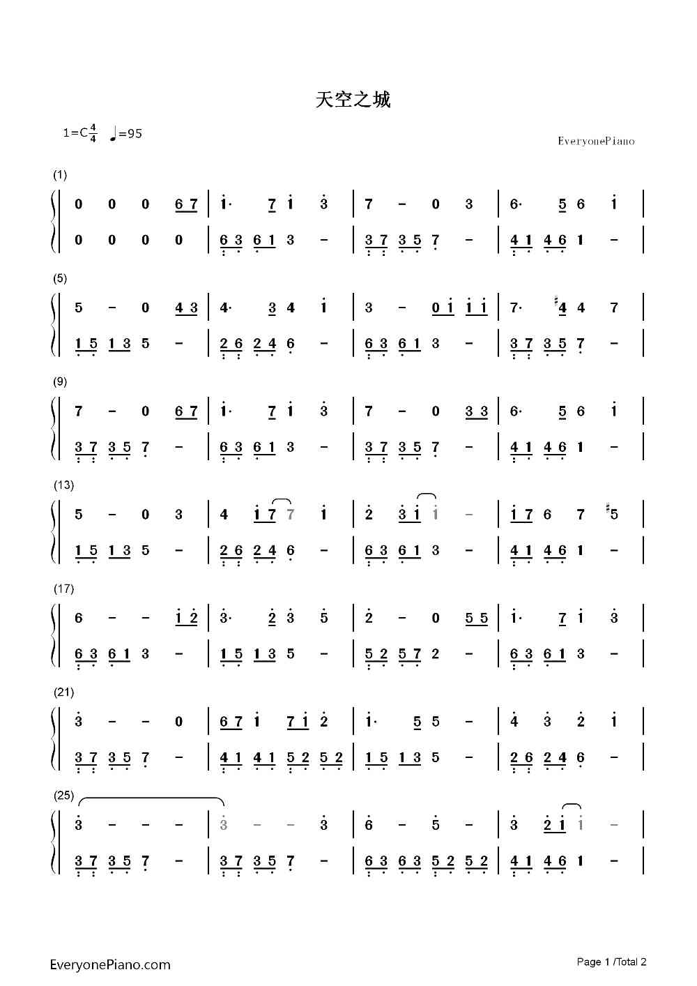 天空之城-简谱钢琴