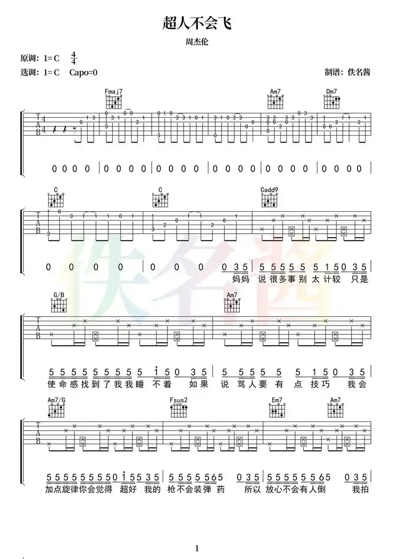超人不会飞吉他谱周杰伦c调吉他图片谱2张