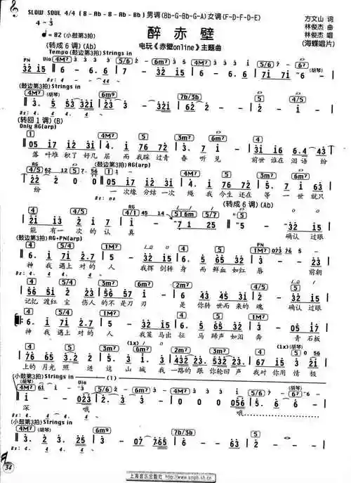 醉赤壁-2008赤壁on line game主题曲(简谱 需改编) - 简谱 - 古筝网