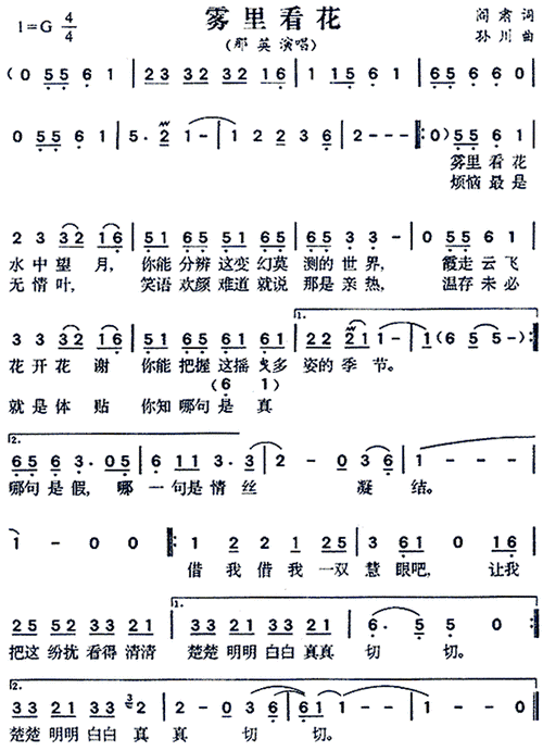 雾里看花(阎肃词 孙川曲)_四字歌谱