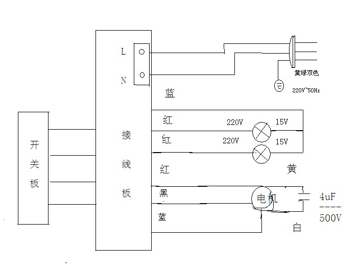 我的油烟机电机根线红,白,蓝,黑,黄,电容,请问师傅们怎么接