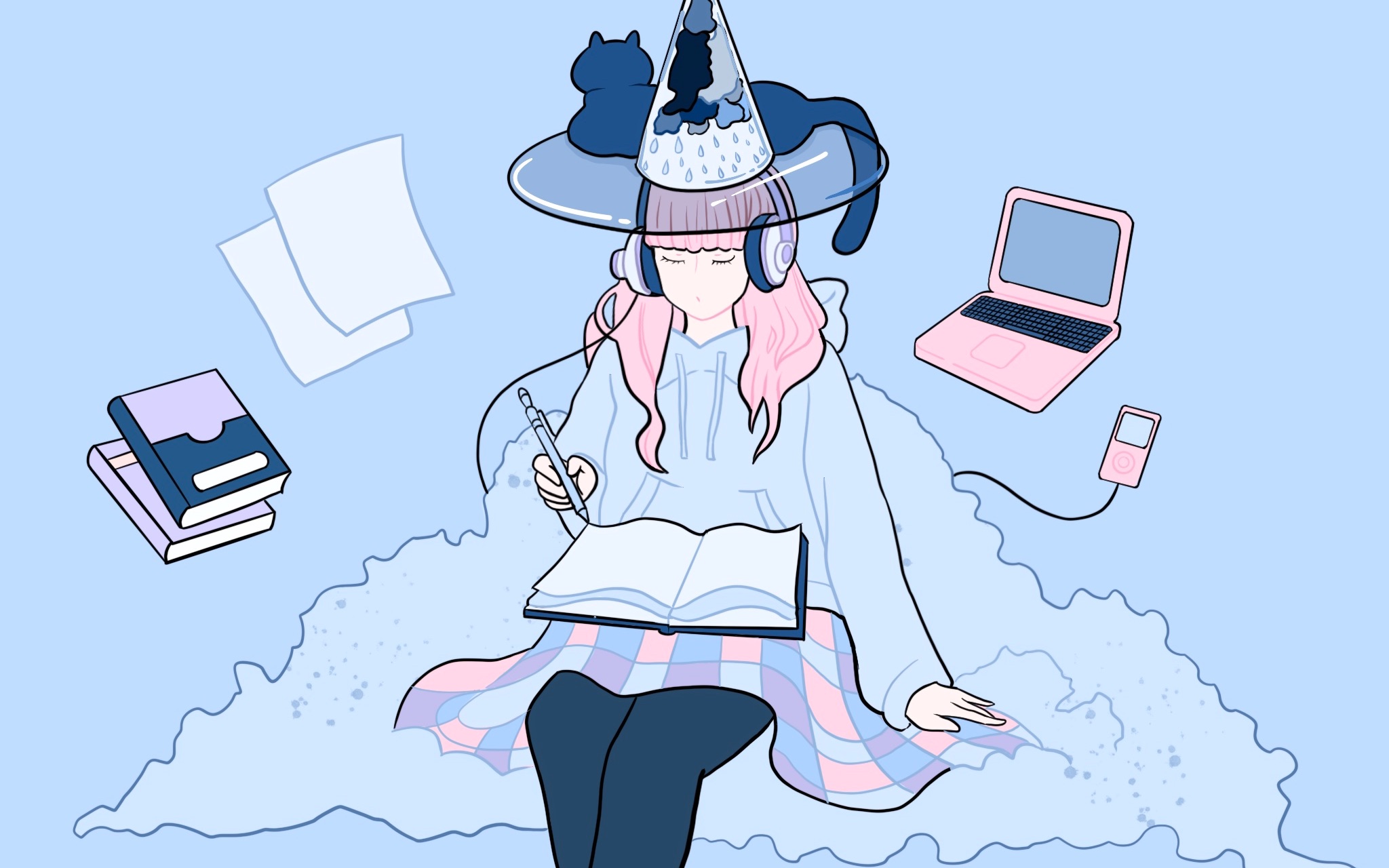 冷色系高冷女学霸日系少女/临meyco插画师作品/procreate插画/壁纸