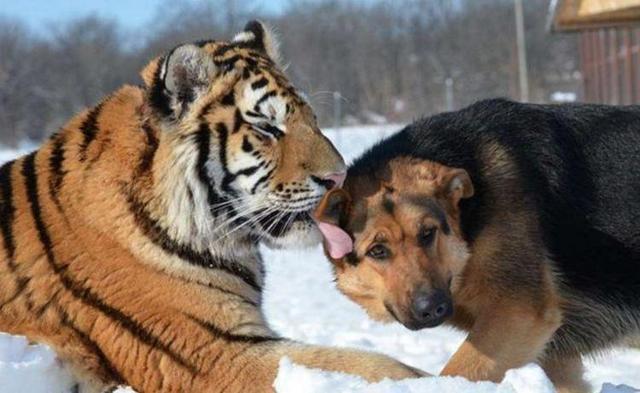 老虎和狗的友谊 动物之间的深情厚谊