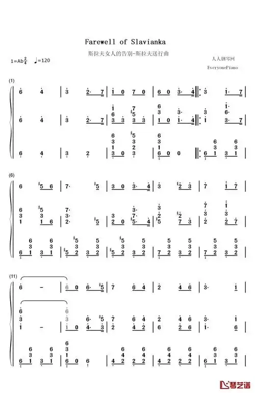 斯拉夫女人的告别-斯拉夫送行曲双手简谱预览4