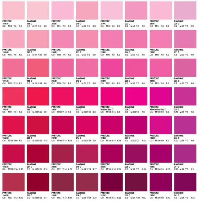 潘通粉色色卡粉色明度变化粉红色要怎么搭配才更好看呢?