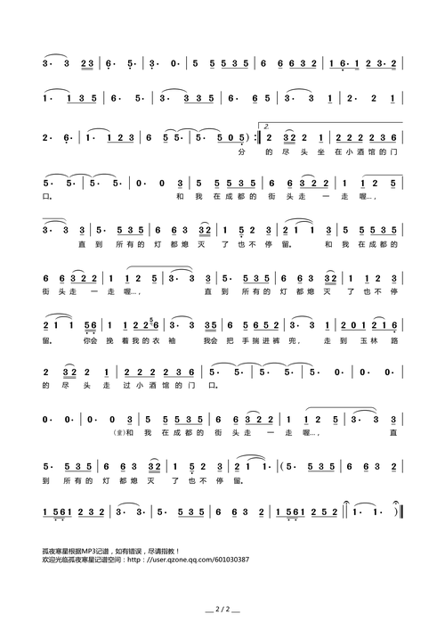 成都简谱-赵雷-刷爆了朋友圈,你又曾因为谁爱上一座城1